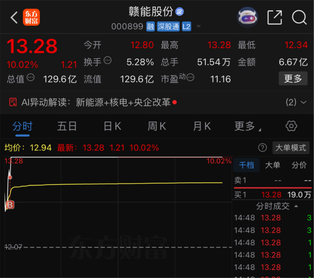 $赣能股份(SZ000899)$ 昨日发文提示豫能或者汉缆断板留意首板,但豫能超强涨停力度打破预期差,阿常直接怼进表现也很强势的赣能。