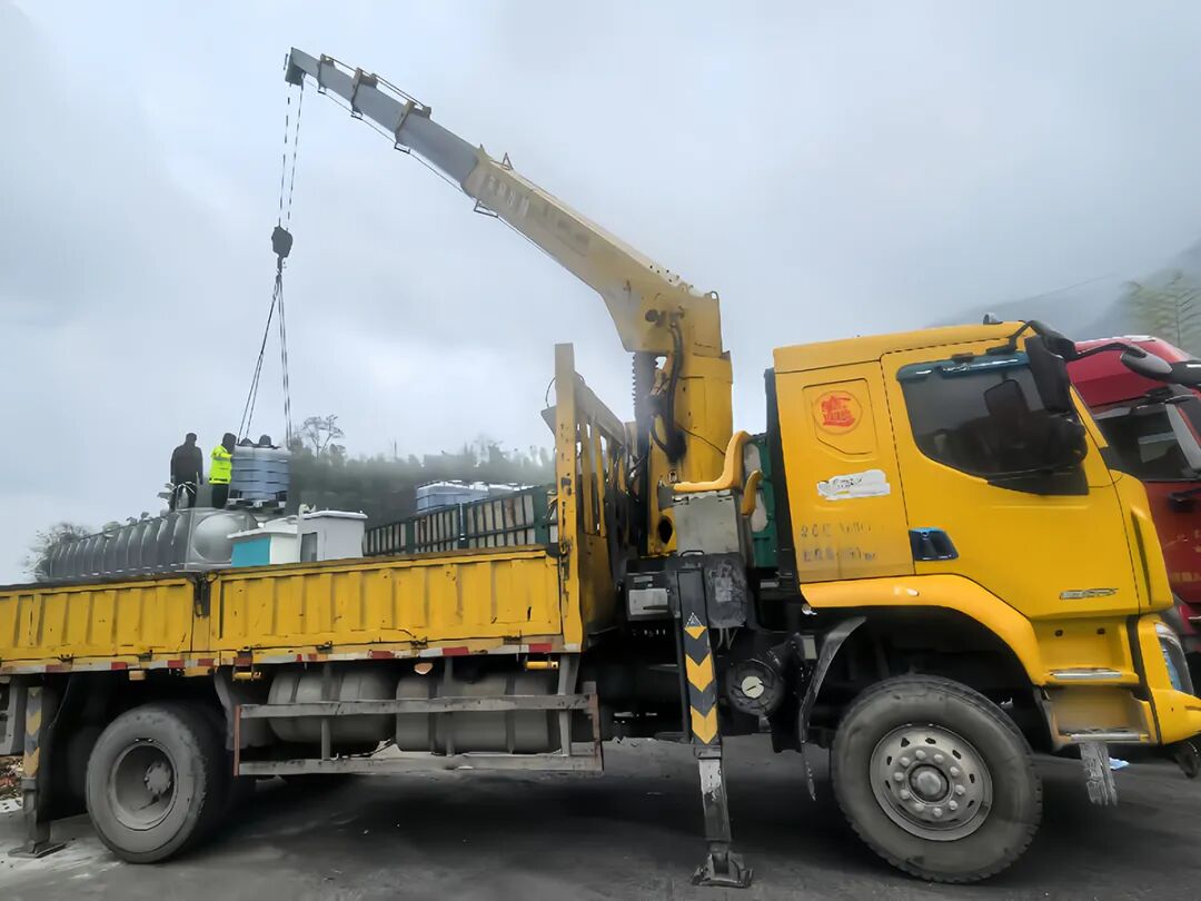 工作人员安装融雪剂罐体
