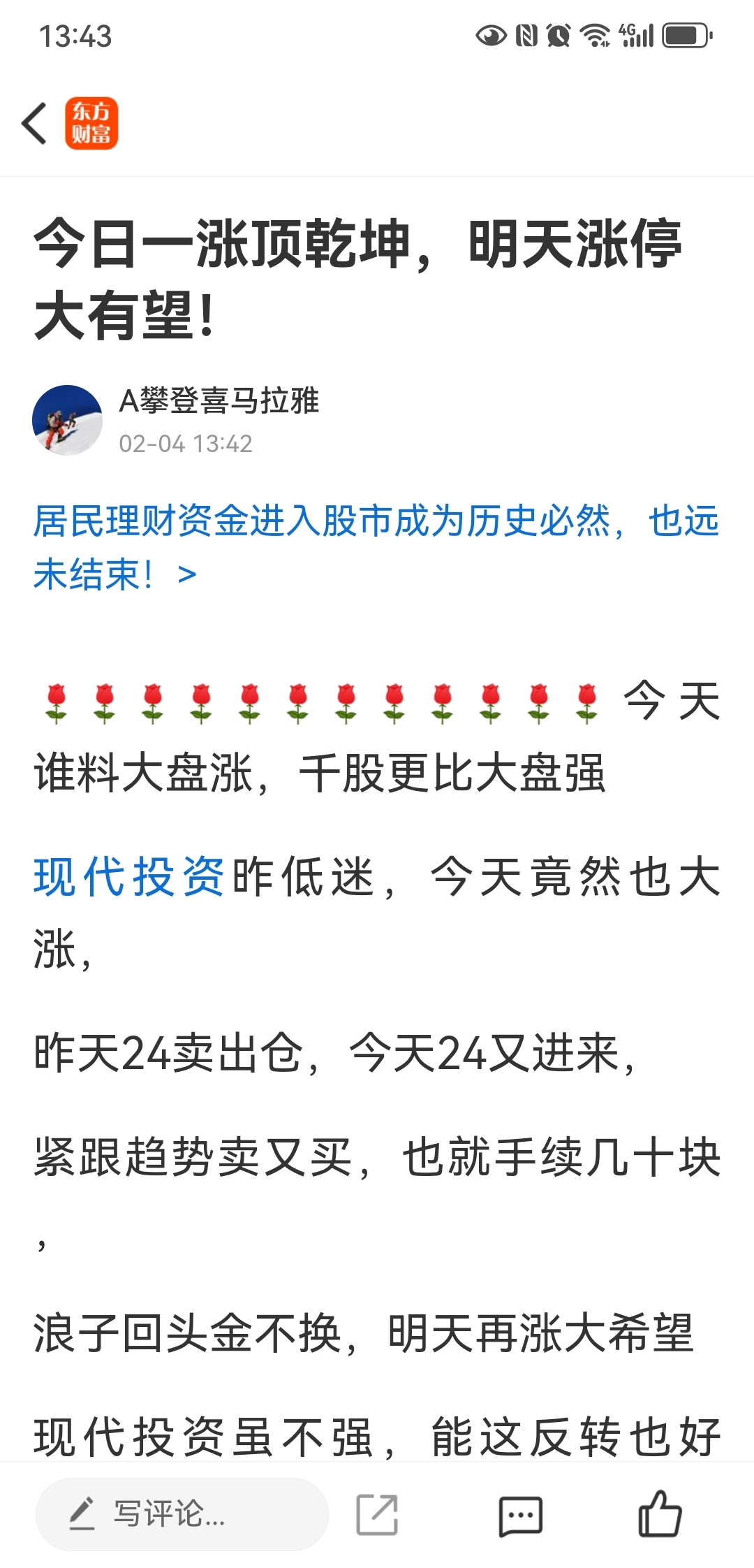 温馨提示: 1.根据《证券法》规定,禁止编造、传播虚假信息或者误导性信息,扰乱证券市场;2.用户在本社区发表的所有资料、言论等仅代表个人观点,与本网站立场无关,不对您构成任何投资建议。用户应基于自己的独立判断,自行决定证券投资并承担相应风险。《东方财富社区管理规定》