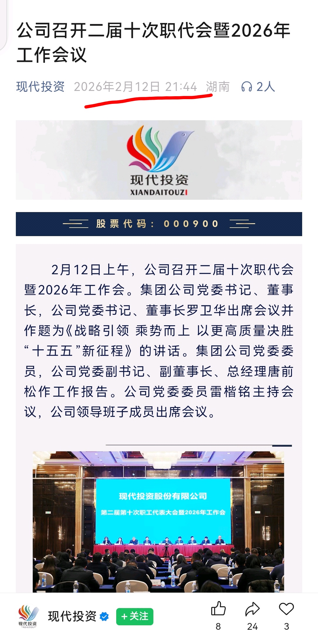 2026年把“奋力提升估值”放到第一位,太好了,希望现代投资老板能够说到做到!