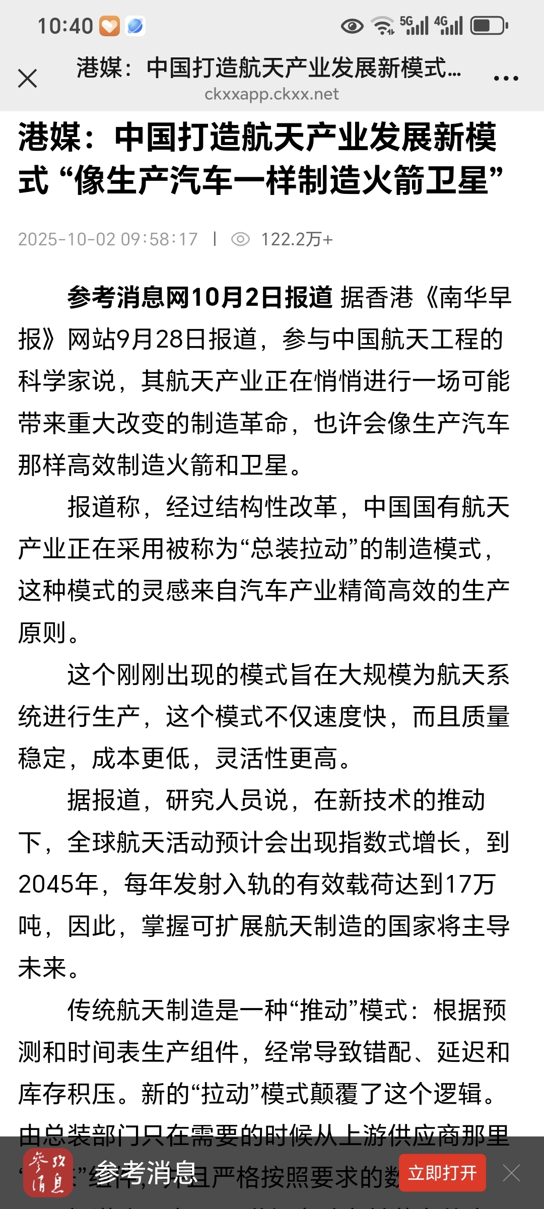 已经有了为重组基础理由了,航天系将一飞冲天,太空强国必须有强大的公司去生产制造,
