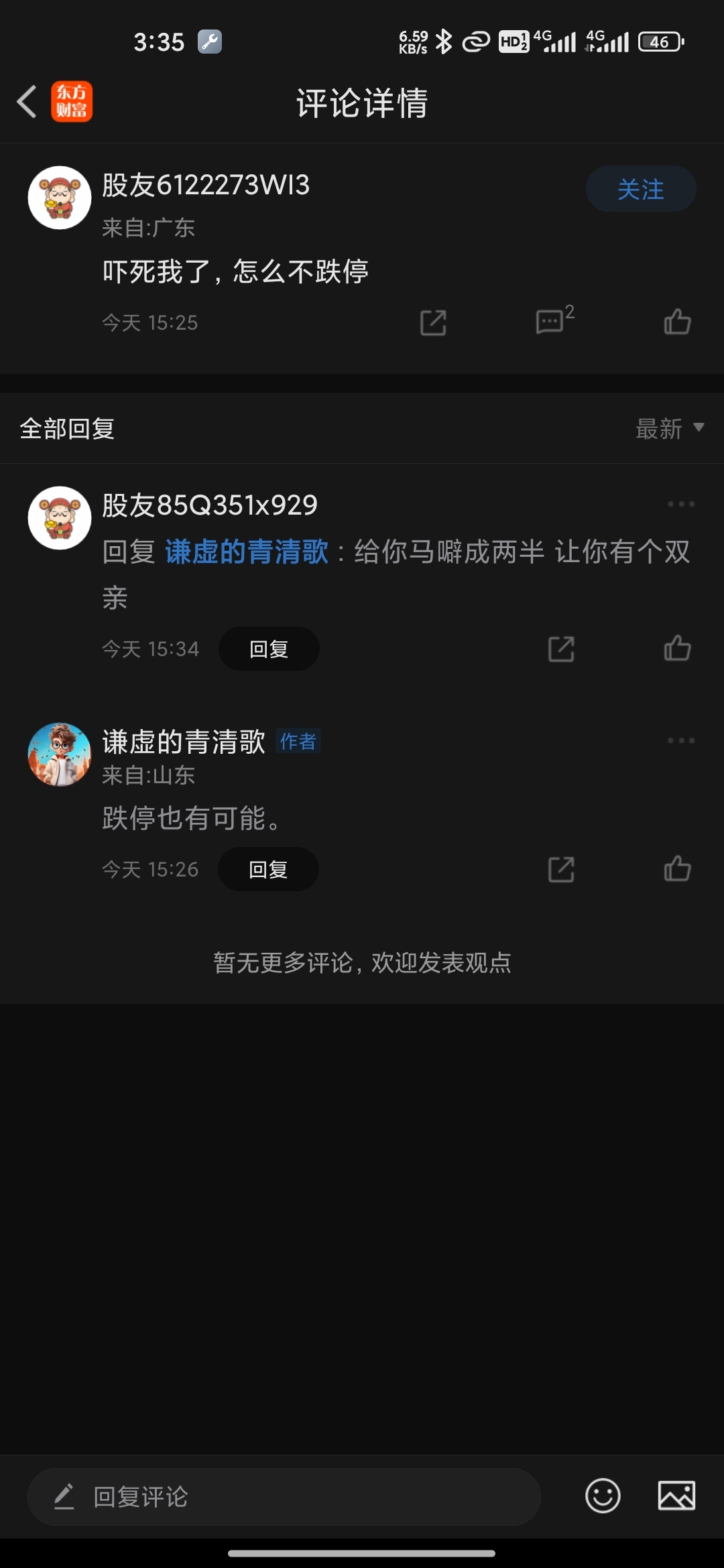 温馨提示: 1.根据《证券法》规定,禁止编造、传播虚假信息或者误导性信息,扰乱证券市场;2.用户在本社区发表的所有资料、言论等仅代表个人观点,与本网站立场无关,不对您构成任何投资建议。用户应基于自己的独立判断,自行决定证券投资并承担相应风险。《东方财富社区管理规定》