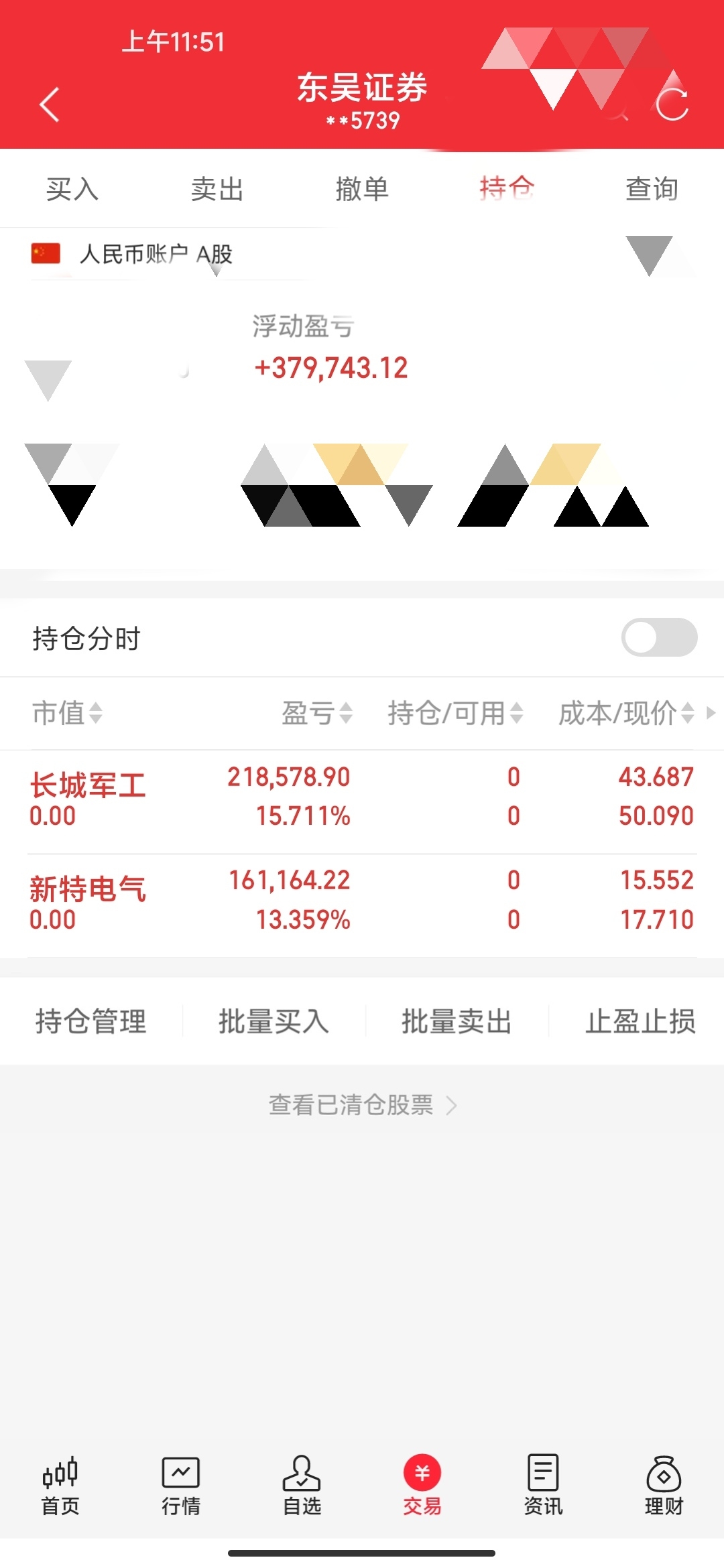 大家好,更新一下今日持仓。将长城军工和新特电气都止盈出局了,都拿到了十多点,挺不