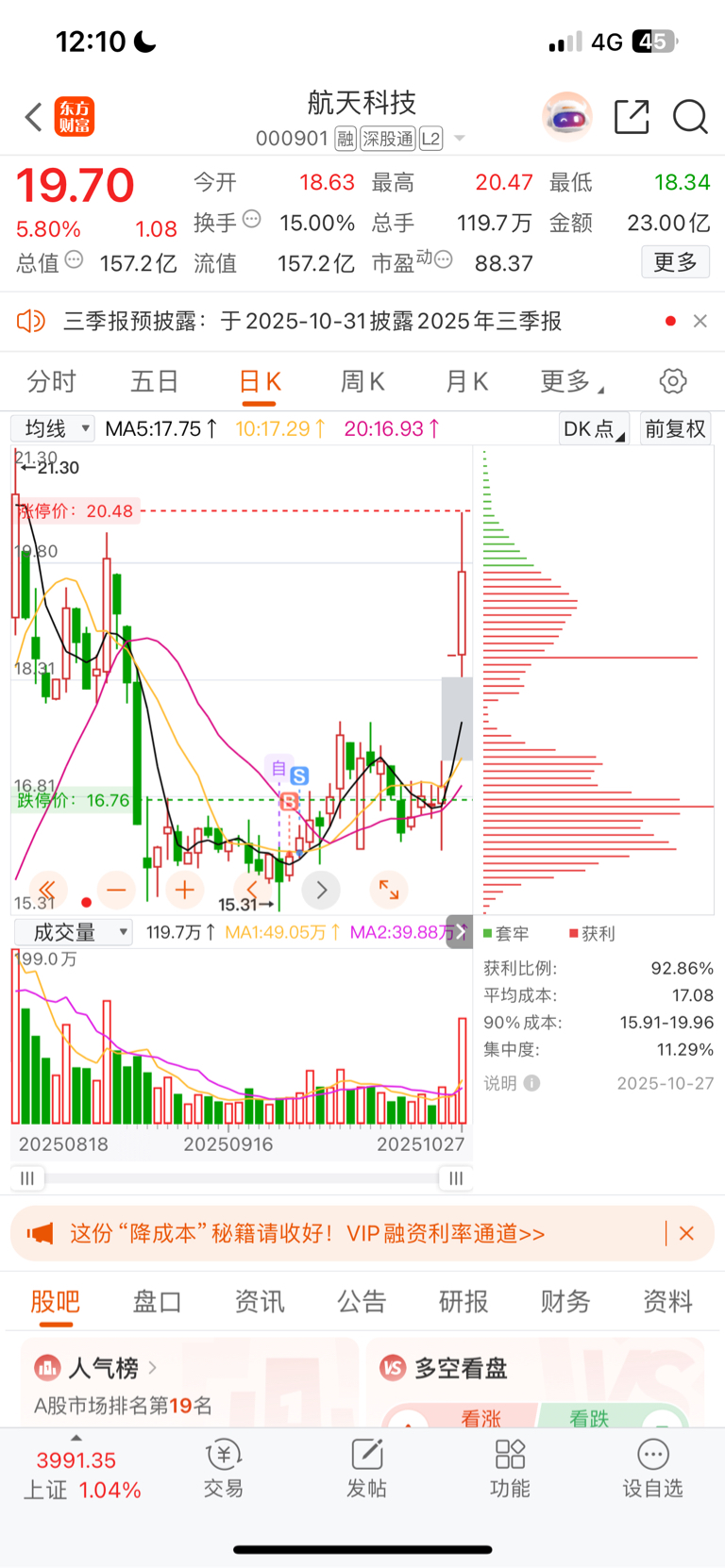 $航天科技(SZ000901)$ 买在最低点,卖在最低点