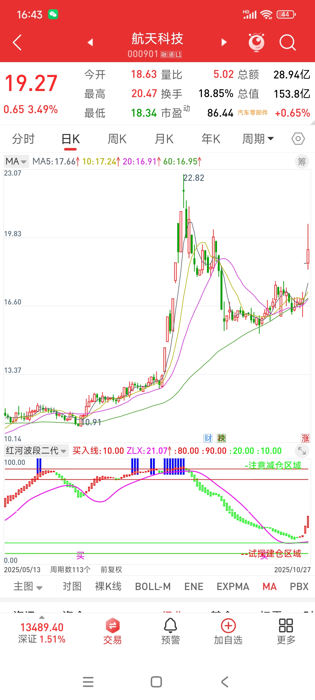 $航天科技(SZ000901)$ 底部出现买字以后,叠加绿柱转红柱做确认,价格一路上扬。那就很直观了,毕竟红柱不停,上涨不止,红柱拉长,加速不止,继续冲