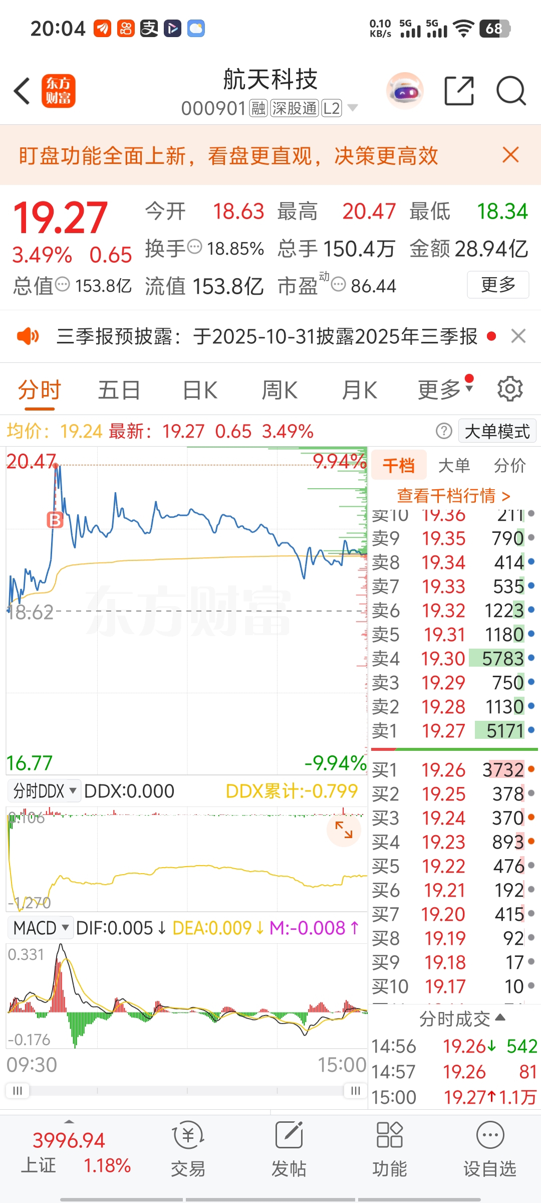 $航天科技(SZ000901)$ 我在遥望山巅之上,我的小心脏哇凉哇凉滴