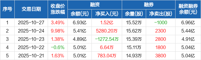 航天科技:融资余额6.93亿元,创近一年新高(10-27)