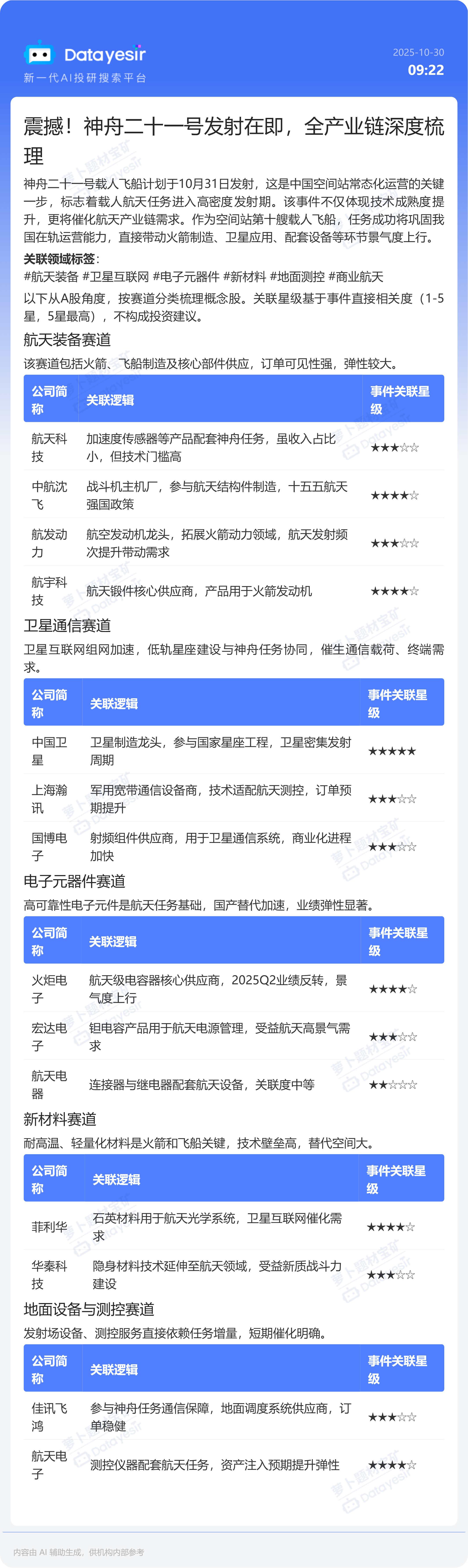震撼!神舟二十一号发射在即,全产业链深度梳理