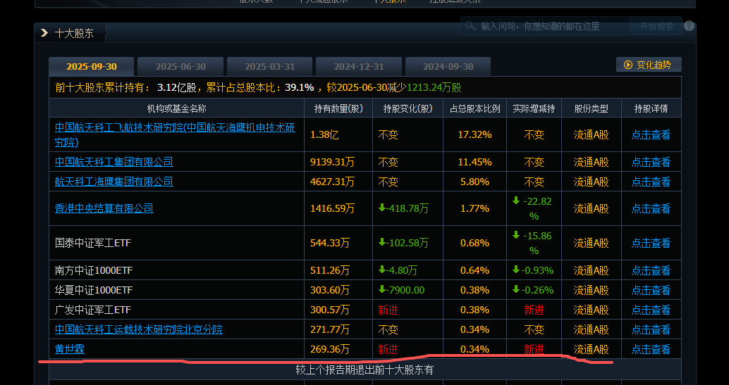 千亿身家黄世霖突击入股成为航天科技十大股东
