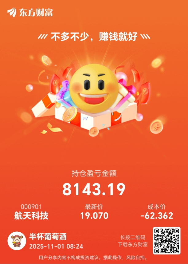 $航天科技(SZ000901)$ 神州21成功发射、利好兑现,本身星期四最高点止盈留了一个底仓、但是尾盘到尾数71的时候本想着把能T的T出来,结果犯贱全仓卖出点成全仓买入、血的教训、星期五吃了一碗大面、本身盈利一万多变成盈利八千多、吐血、短暂看调整、底下那个缺口按正常来讲不会补,后面慢慢做回来,缺口是启爆点、慢慢观察慢慢做回来、把这次的教训记录一下