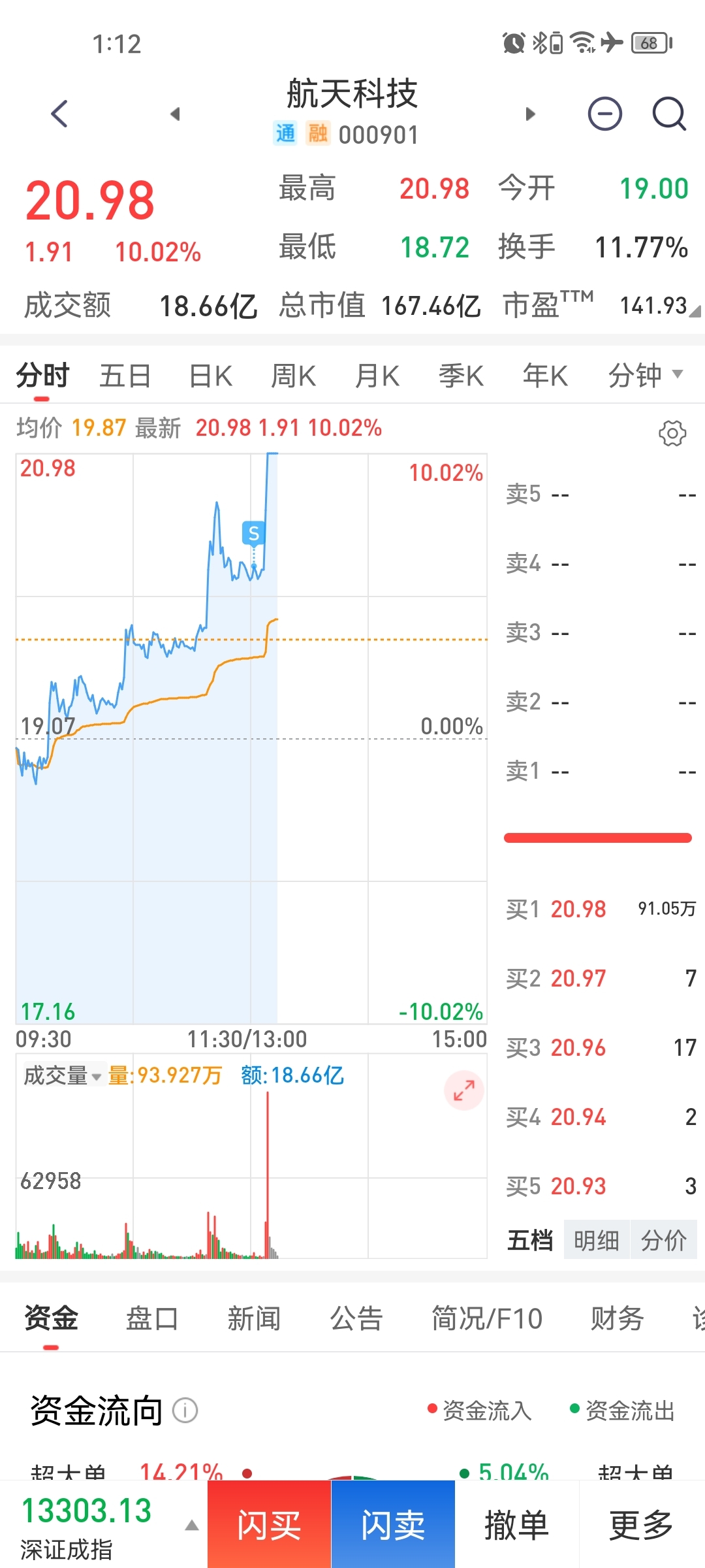 $航天科技(SZ000901)$ 又是卖在涨停前,又一次擦身而过,缘分这东西强求不来。