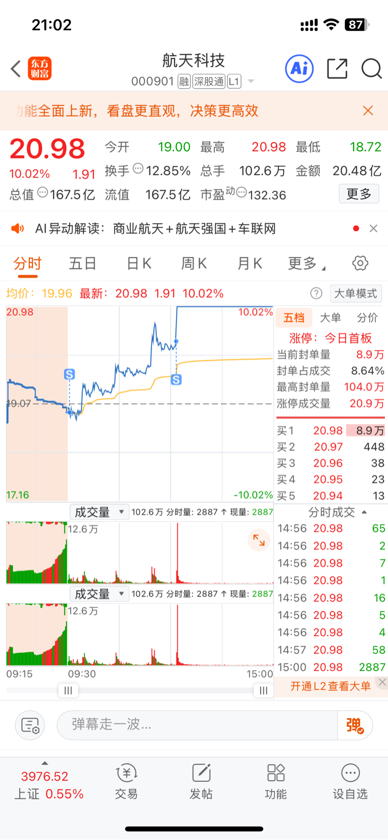 $航天科技(SZ000901)$ 我不清仓,你们能抓涨停?