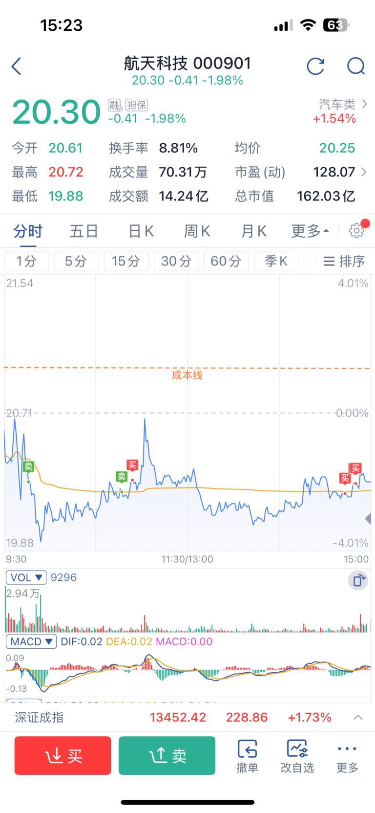 $航天科技(SZ000901)$ 高抛低吸做的稀巴烂,尾盘补了一点,没敢多补