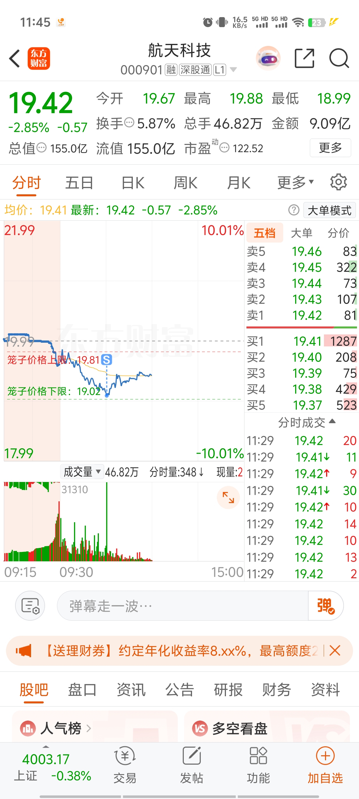 $航天科技(SZ000901)$ 一天一个蠢操作,一个2万大单把我砸出去了