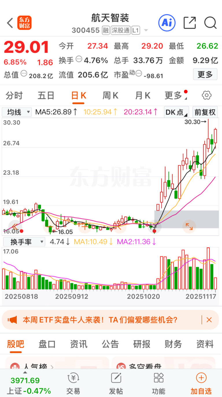 $航天科技(SZ000901)$ 你业绩增长976%,人家智装负增长674%却不停创新高?