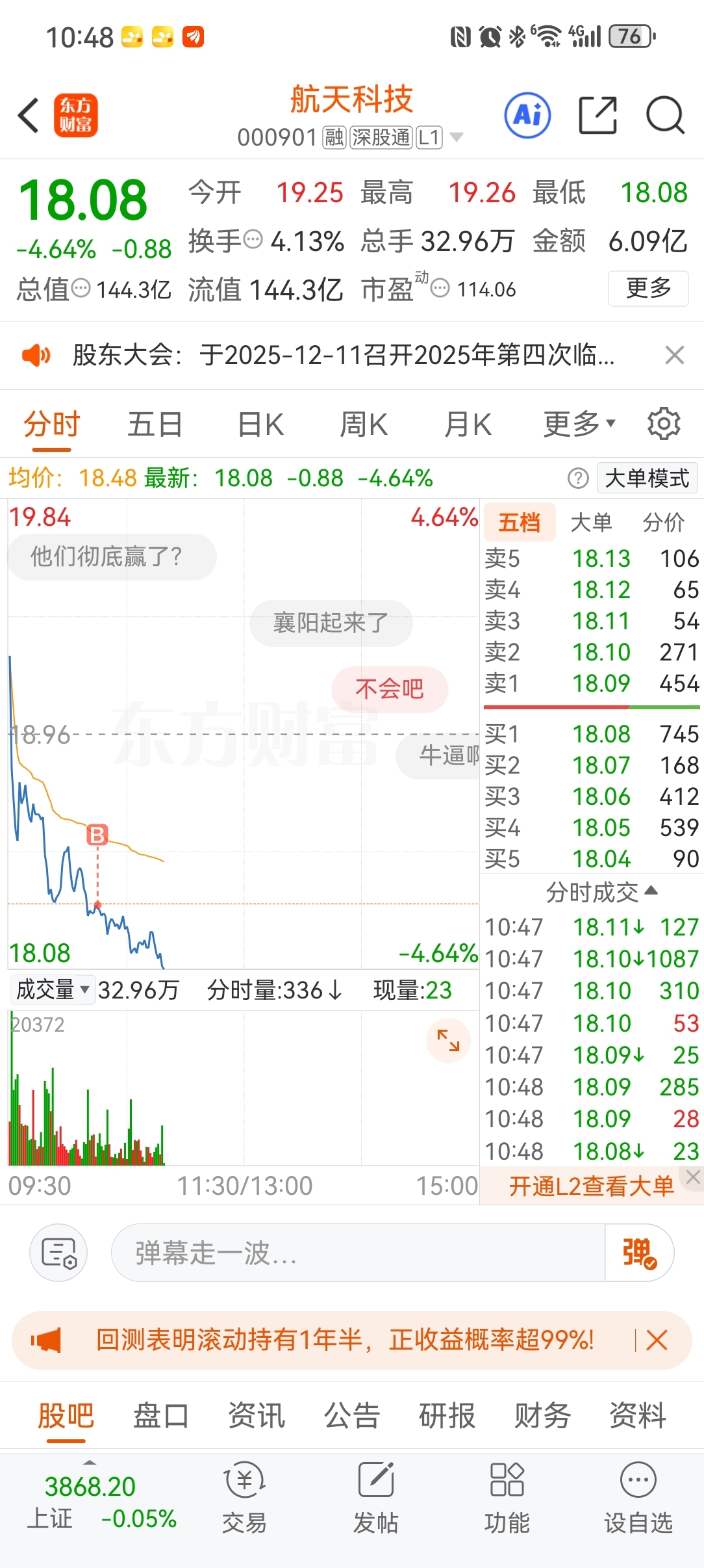$航天科技(SZ000901)$ 只要买进去就无限下跌
