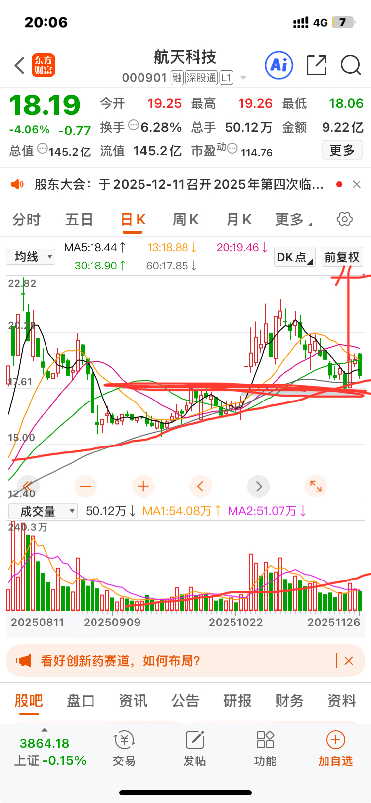 $航天科技(SZ000901)$ 三天补缺口,有效,低点,价上升。先拿一拿吧