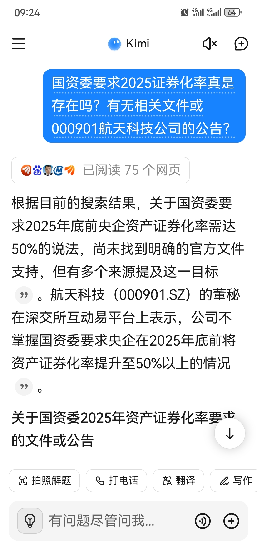 再评证券化率,看看航天科技的重组传闻存在吗?!Kimi的回答…