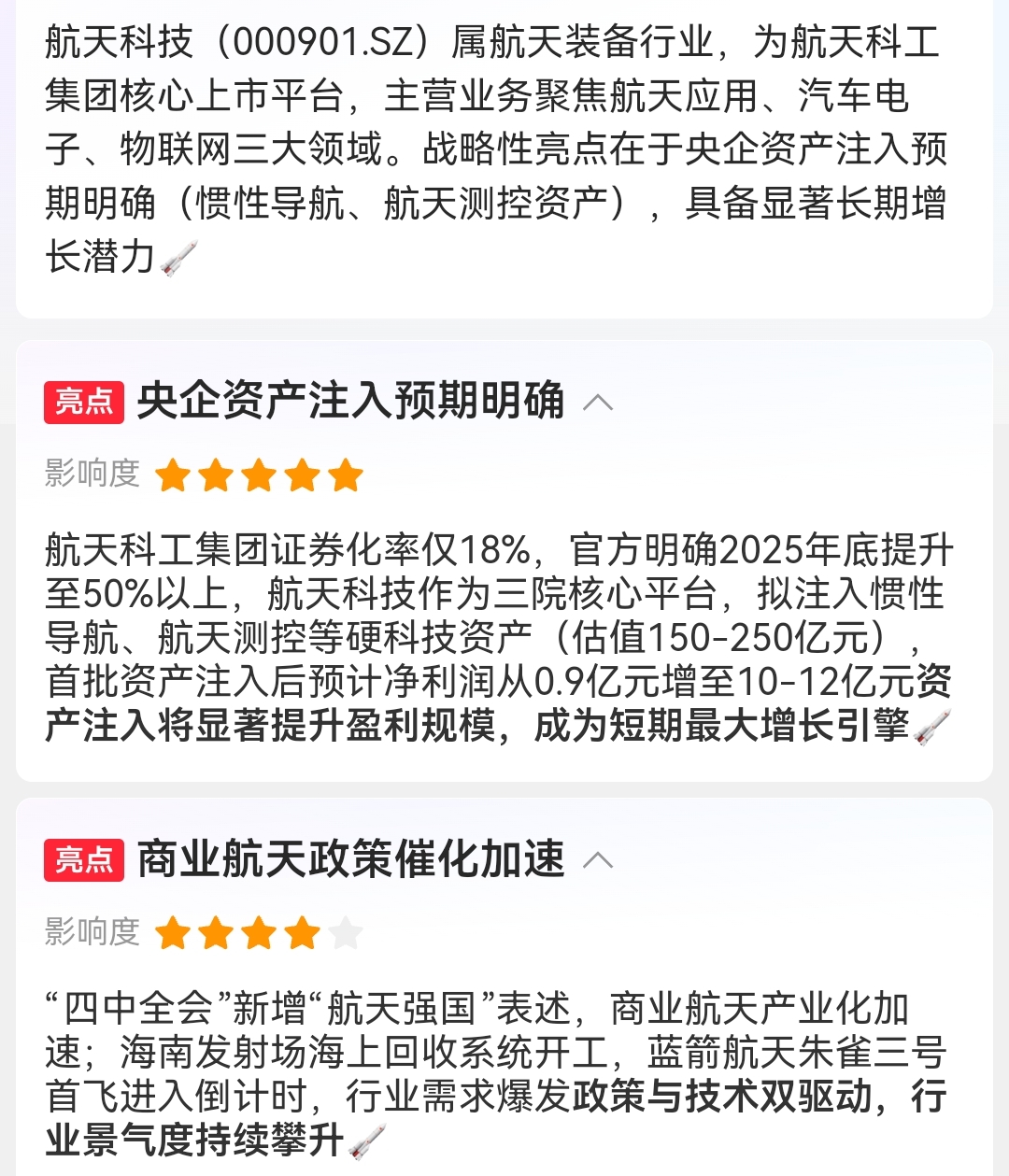 $航天科技(SZ000901)$ 证券化提升50以上,本月就要完成,是大利好吗?