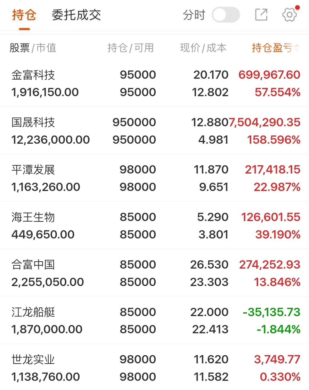 今日持仓:世龙实业 周五洗盘力度还是不错的今日有望高举高打