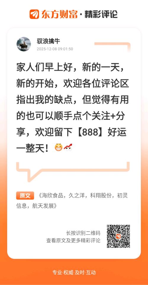//@驭浪擒牛 :家人们早上好,新的一天,新的开始,欢迎各位评论区指出我的缺点,但觉得有用的也可以顺手点个关注+分享,欢迎留下【888】好运一整天!