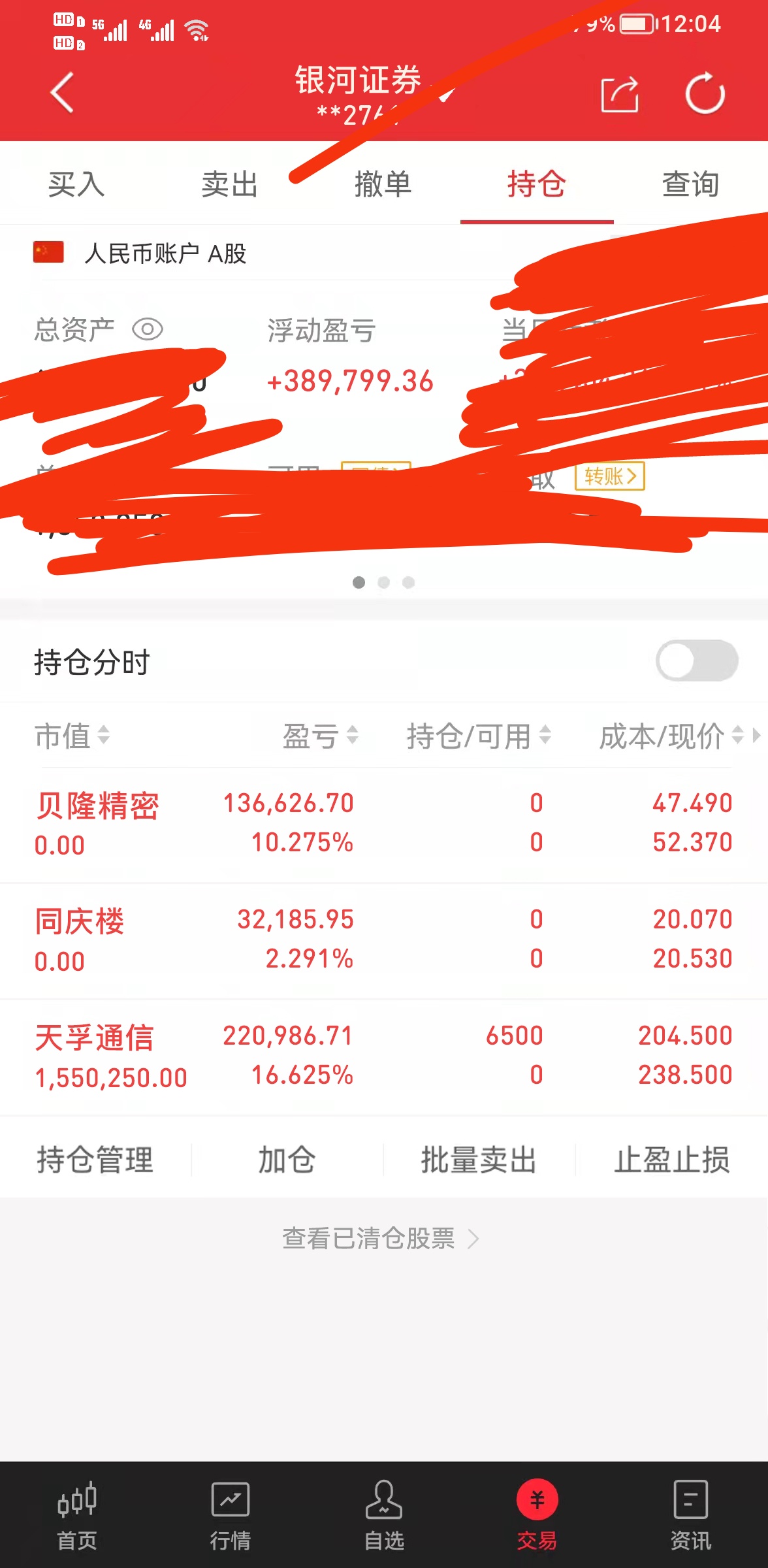 $航天科技(SZ000901)$ 大家中午好,记录一下今日。将同庆楼和贝隆精密止盈出局,贝隆这波10cm还不错挺给力。新进了天孚通信,太给力了 介入即惊喜!期待明天的表现$天孚通信(SZ300394)$