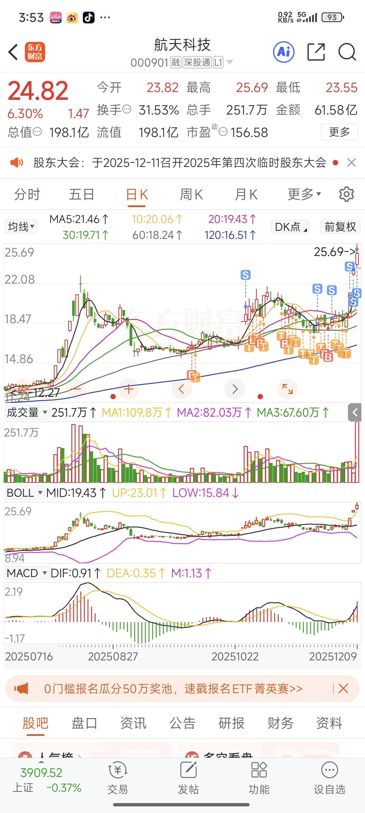 $航天科技(SZ000901)$ 再见了各位,虽然做的不是很好,也赚了一倍
