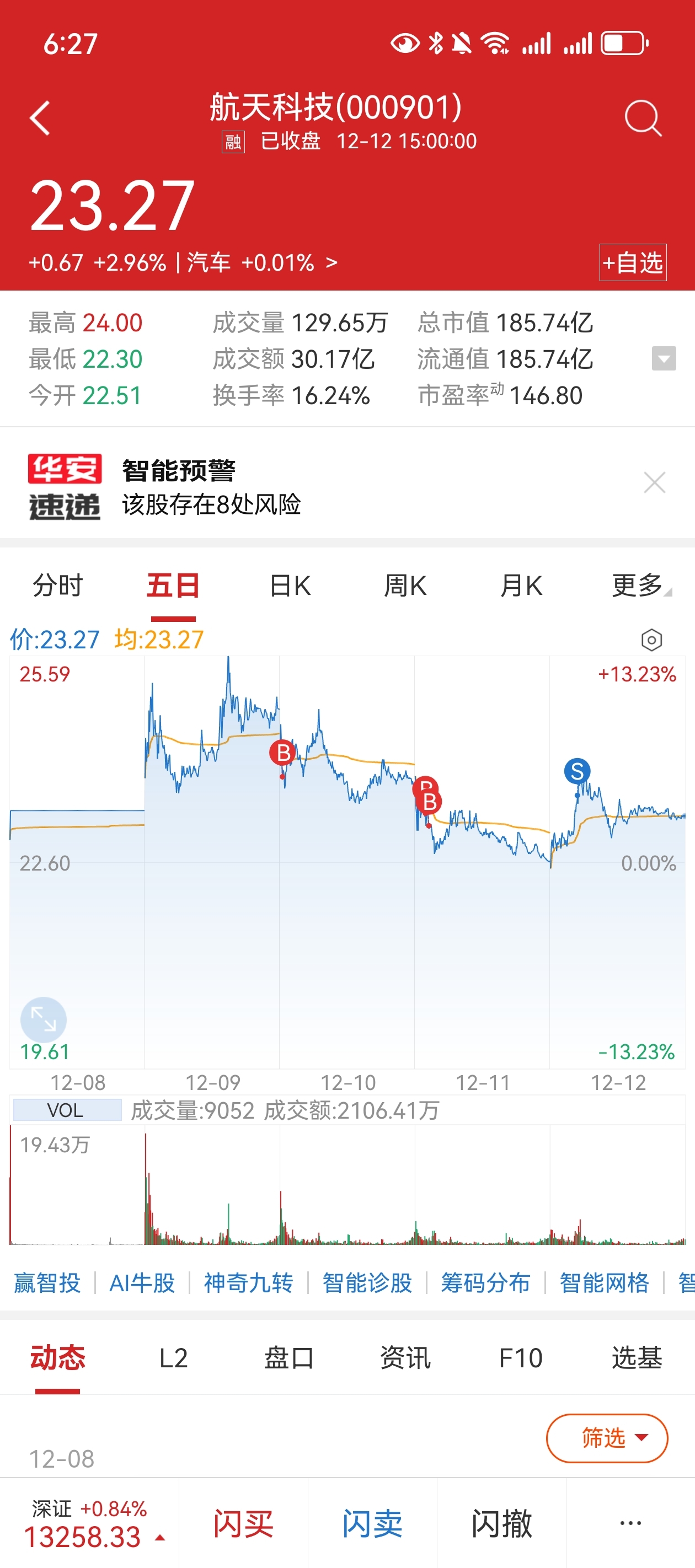 $航天科技(SZ000901)$ 守了三天,赚了一个点走了,谢谢助力。