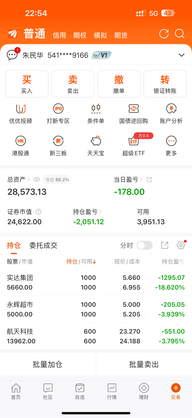 看了博主的账单和感想,试试帮你支招:毕竟早年东财有偿“问答广场”我是答主之一,救过许多散户!股市彦语:买在阴底踏实处,卖在阳顶止盈处,100%赚钱!可到市场博弈却有多少人做到?股价不在高低,在“时空价量”四要素判断!1)实达集团两月升203%,股价日线7.25/牛熊线4.50技术性乖离161.1%,短线泡沫现,日线四连阴,不应接主力10日出货-9.5亿飞刀!本季数列时间(89(21))变盘筑长上影,明年三季度有新低!2)永辉超市本月创新低反弹150.8%!股价刚从季月长周期空头排列反弹遇下行的季牛熊线4.70,月牛熊线4.52;主力10日出货-15亿!大盘亏损股吃套必然,今年四季度正是数列变盘时间(55(5)),同样明年三季度有新低。3)航天科技五个月升202%,日线25.69/牛熊线18.55技术性乖离144%,周四走完九转上升K9,是不是升势尽?看K9上影23.89能否化解,可主力10日出货-5.32亿!本季数列变盘时间(89(13(5)),一旦补缺21.23不能重升,明年三季度有新低!总结4000点附近,市场主力三个月净流出-2.45万亿,就小心玩股,日线短乖离130%以上者,主力出货就莫沾!
