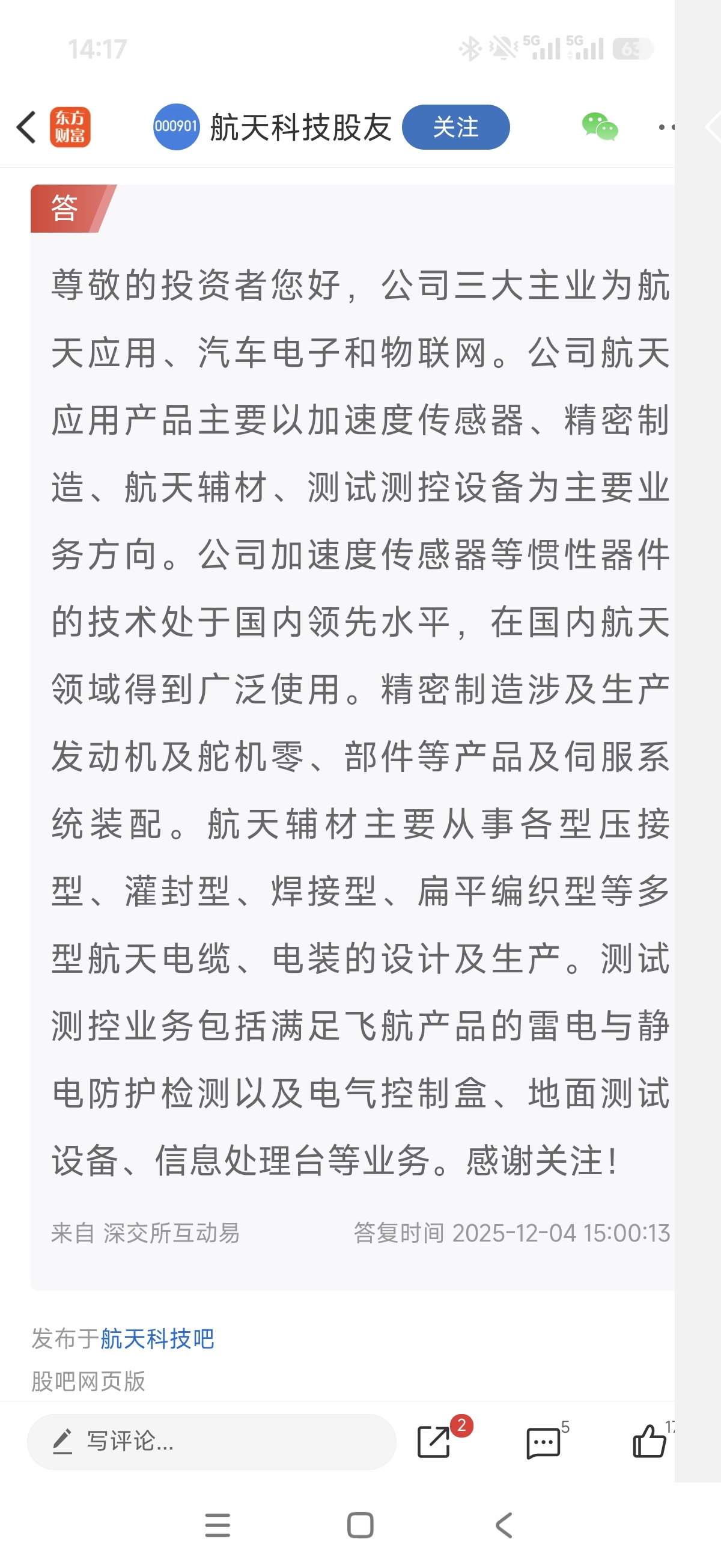 $航天科技(SZ000901)$ 航天应用一年约7亿业务,利润率约15%,需占比不大,后面发展待看,但也是真商业航天股。