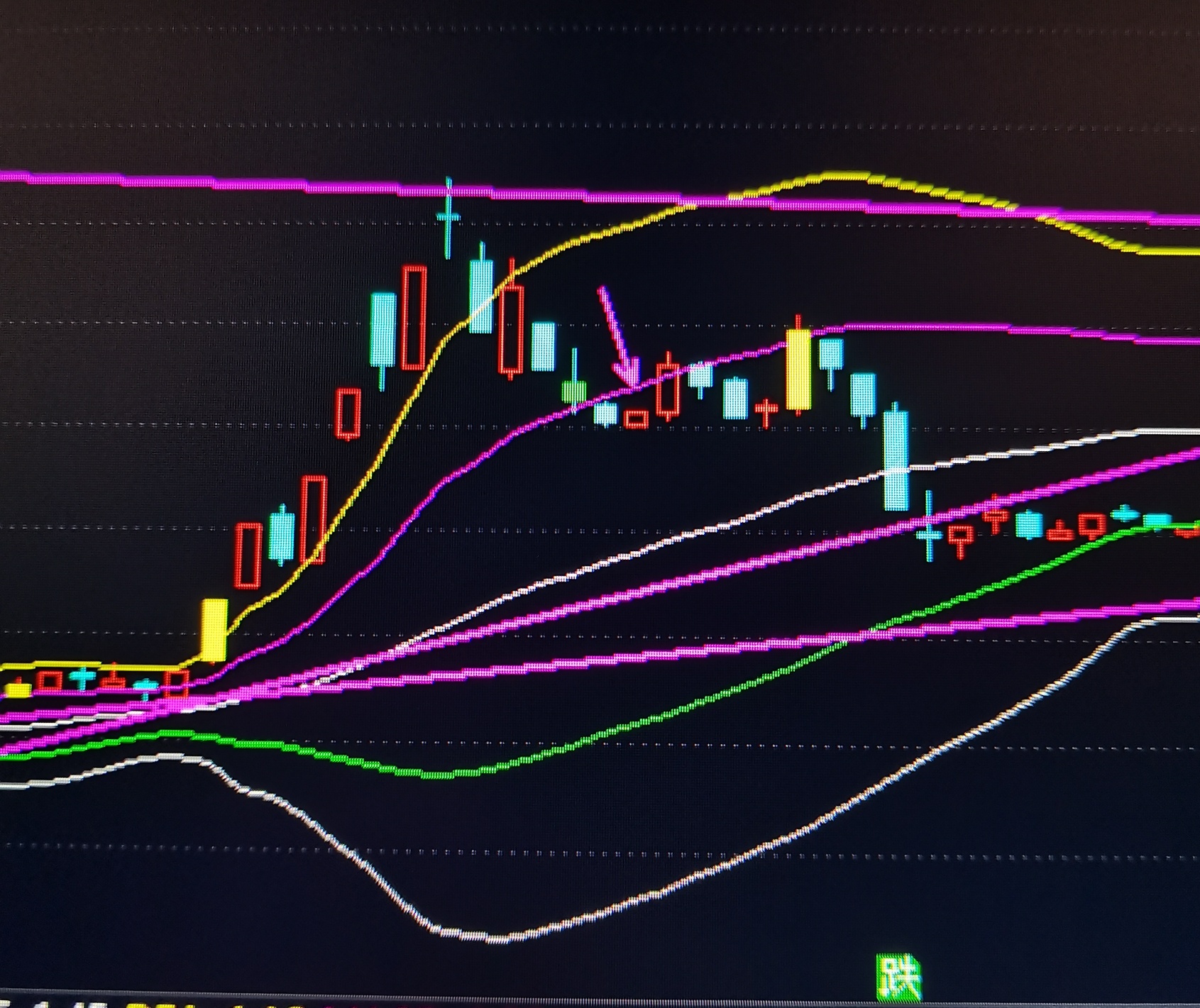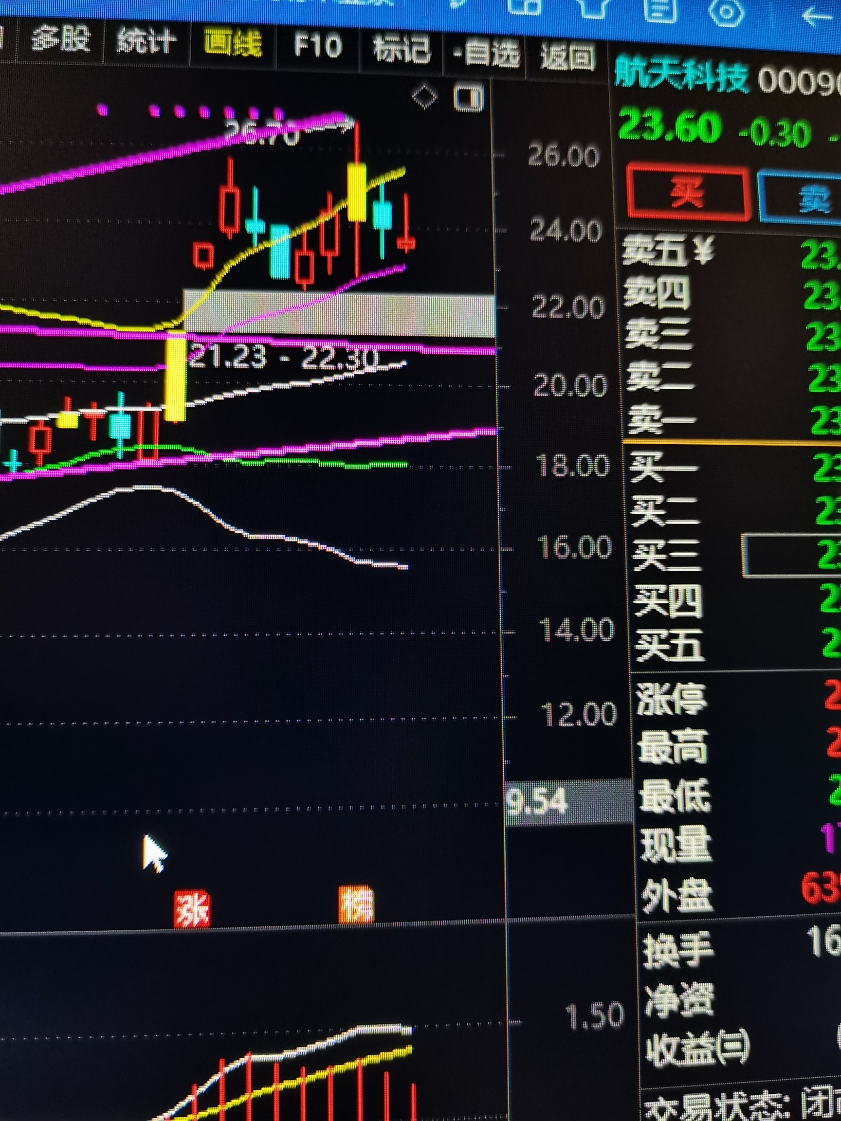 上两次航科跌破紫色线后转空,趋势改变,今紫色线在22.96为关键防守点仅参考