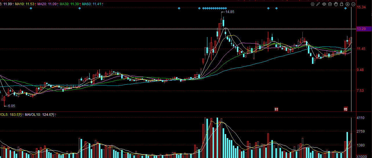 三维通信002115:公司是卫星通信概念股,周四虽然是冲高回落,但是短期来看更像是试盘的动作,最近四个交易日也是放量明显,下方五日线有较好的支撑,周五回踩下方如果能有较好的接力,更像是倒车接人的走势。从技术面来看,现在下方多条均线都是拐头向上的,周五如果能有较好的接力,还是有望继续来中阳线的。