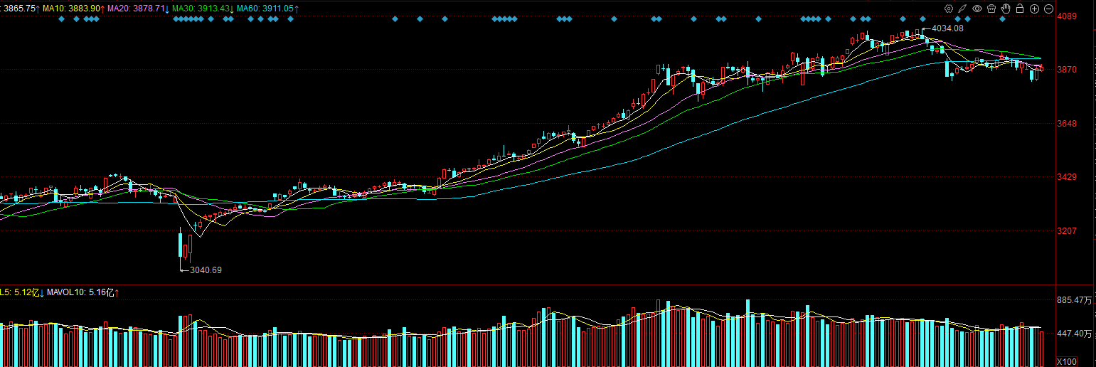 但是,如果反弹还是无量的话,那么就应该是不能有效突破压力位的,就会回头并展开回踩蓄势走势的,下方的支撑位就还是3850点。