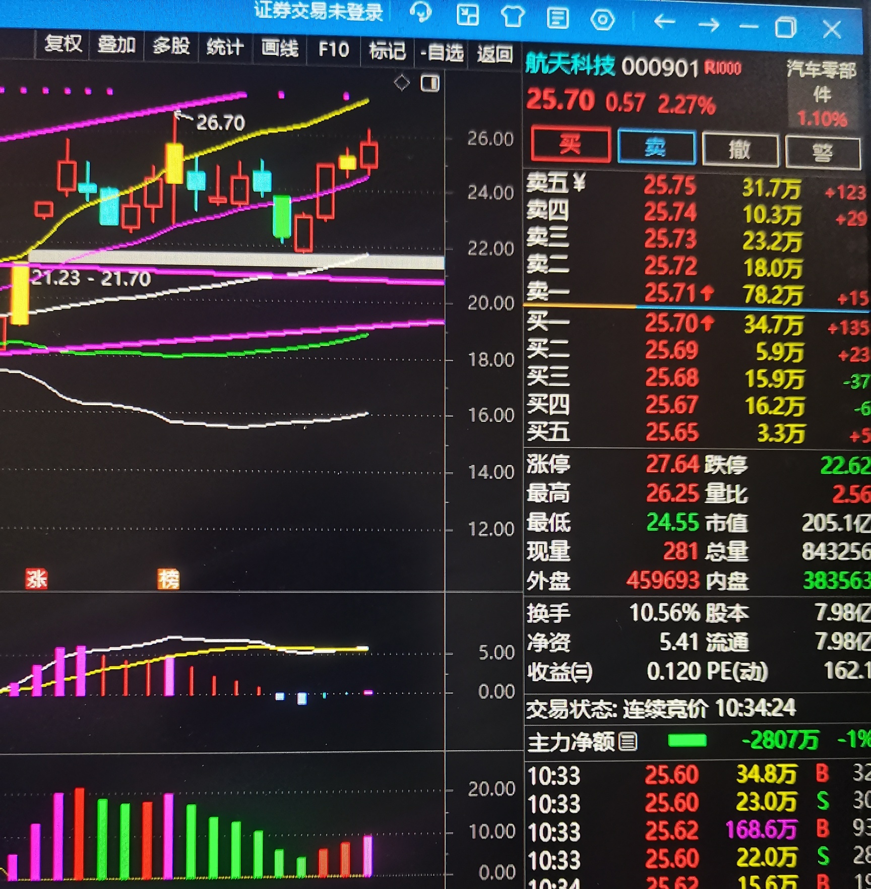 今航科量价齐扬,表示将挑战26.7高点,趋势防守在24元,继续格局,静待花开