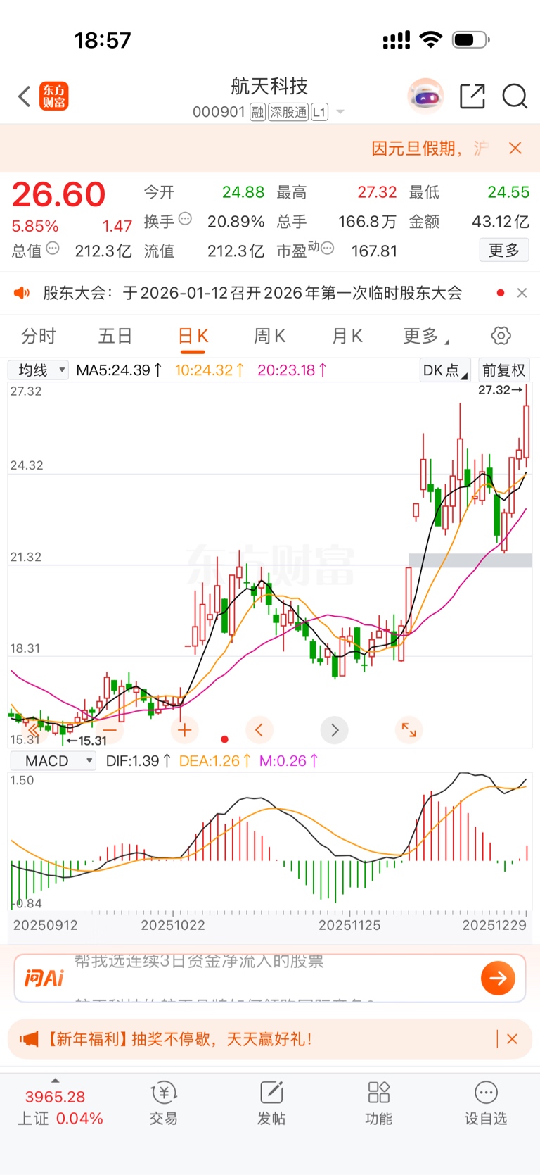 $航天科技(SZ000901)$ 主力来了,明天高开封板