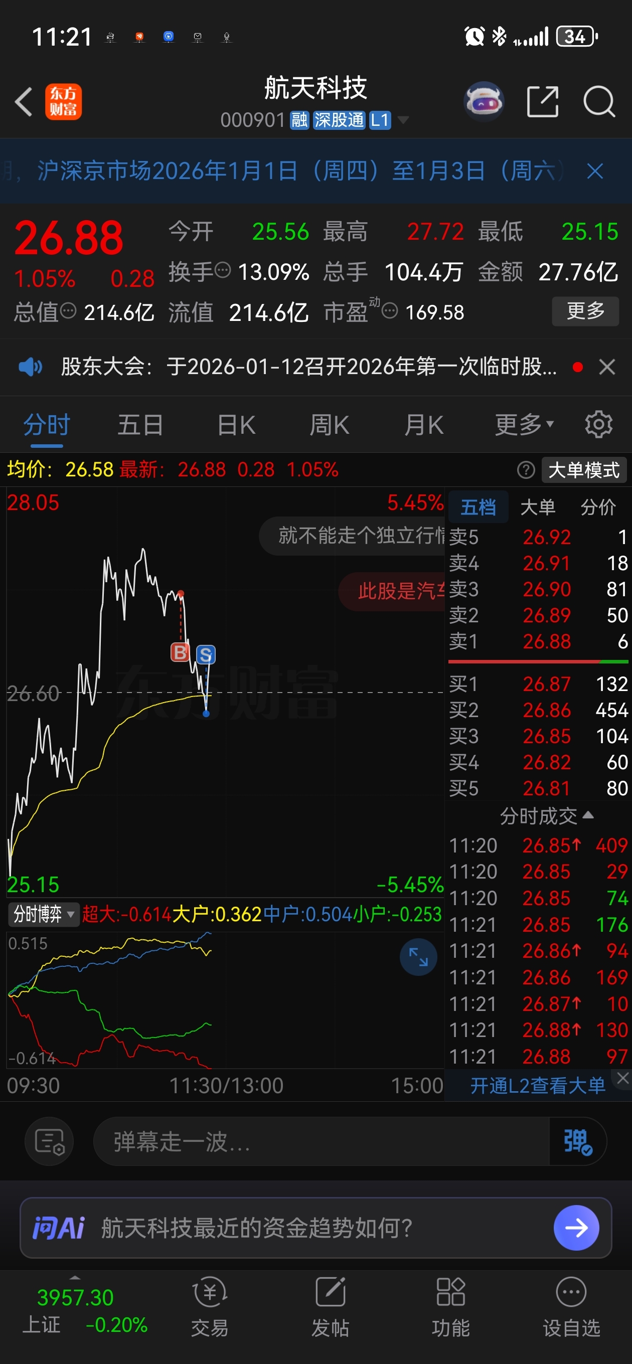 $航天科技(SZ000901)$