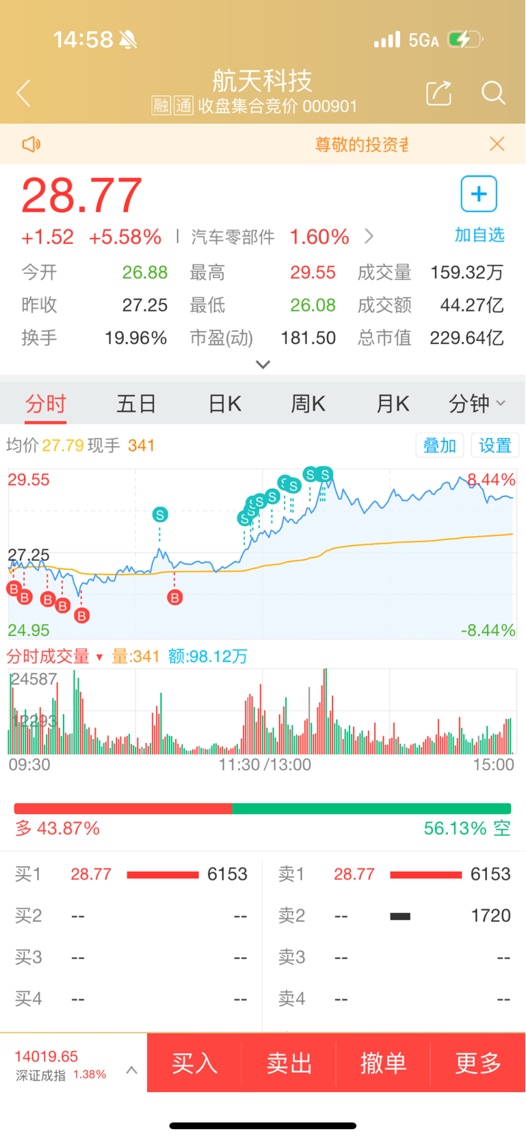 $航天科技(SZ000901)$ 明天继续!成本7元,舒服