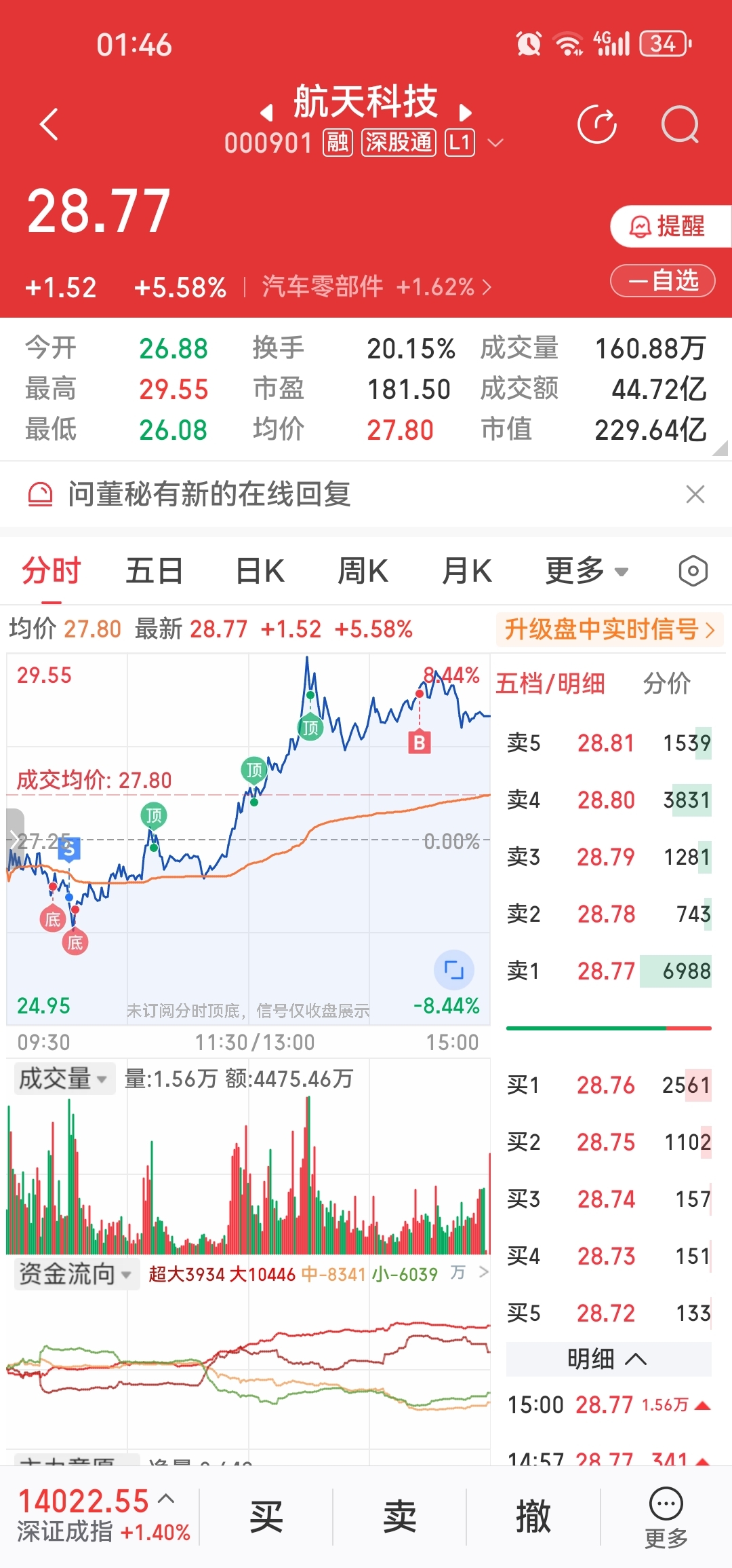 $航天科技(SZ000901)$ 头一次昨做T,做得很成功,点赞
