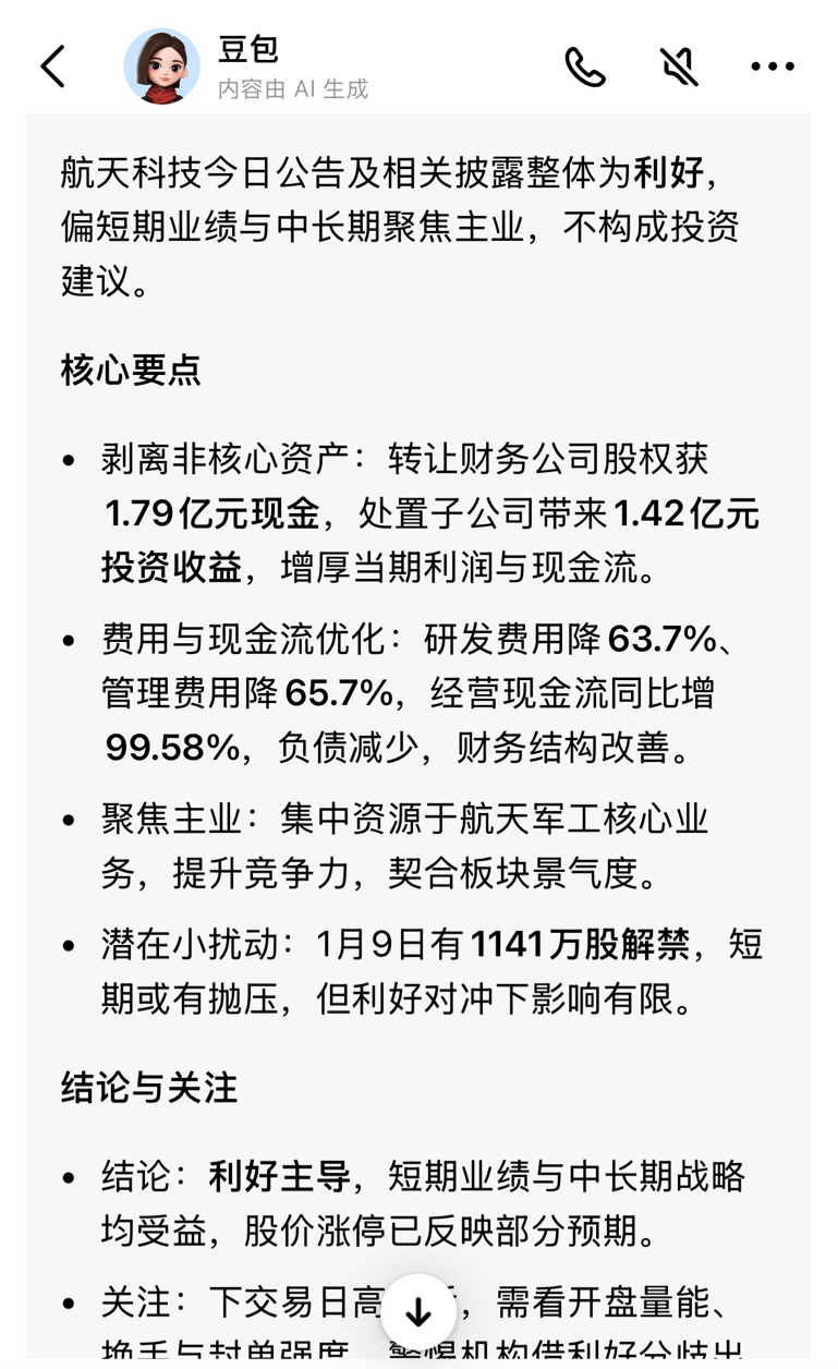 $航天科技(SZ000901)$ 利好??