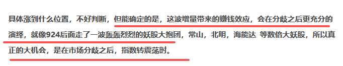 像目前这种,前面给了三天充足强度,场内吃到了甜头,今天又给了场外入场的机会,就很好了,后面大概率会继续保持趋势向上,还是像昨天说的,增量带来的赚钱效应,会在市场分歧后充分演绎。
