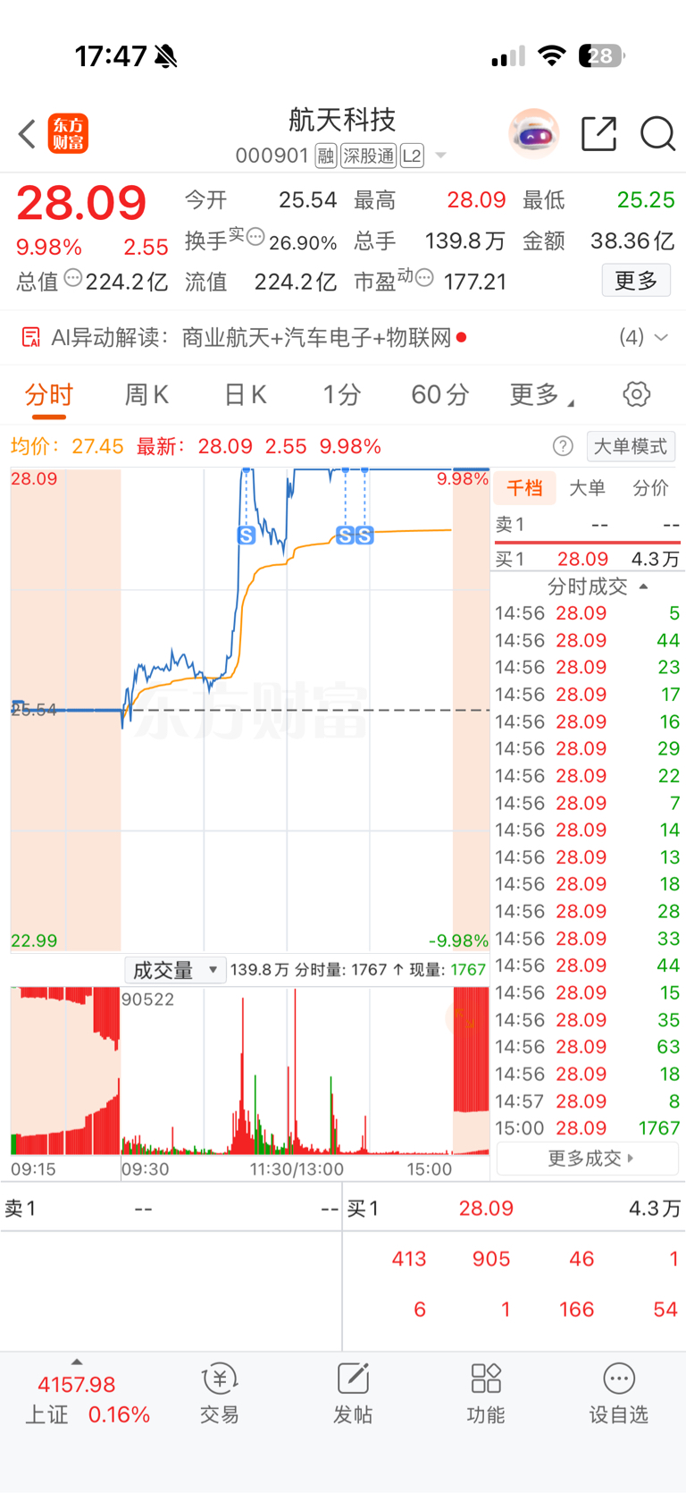 $航天科技(SZ000901)$ 被骗出去了 留下的兄弟们发财