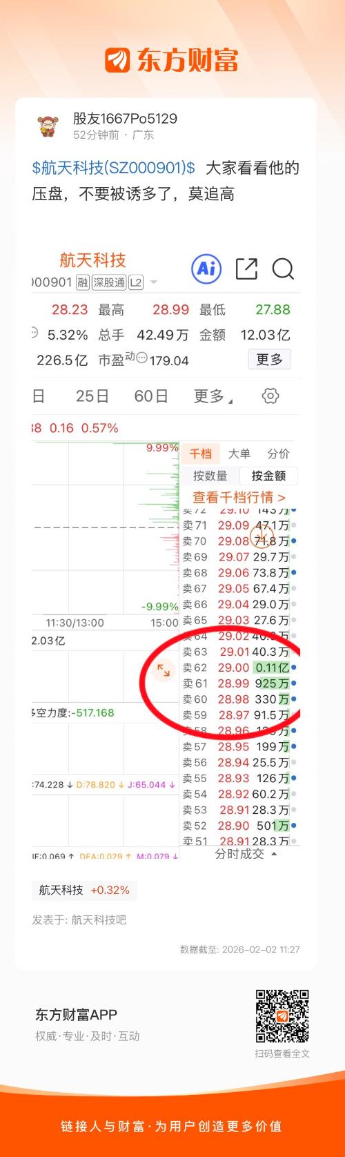 $航天科技(SZ000901)$  大家看看他的压盘,不要被诱多了,莫追高