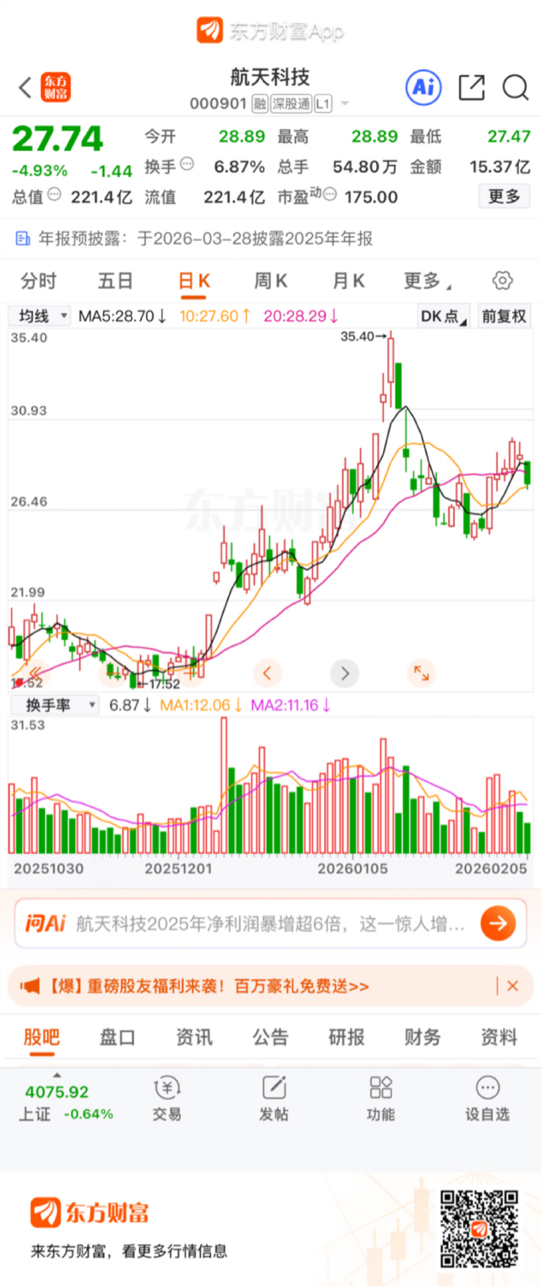 #社区牛人计划# $航天科技(SZ000901)$ 主力睡大觉,韭菜忙砸盘卖了好过年,明天一放量,韭菜大呼上其当