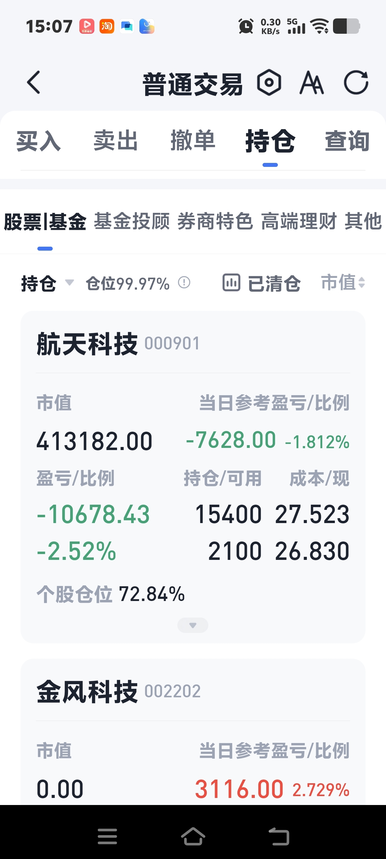 一路杀停盘,一路补到停盘,还有最后15W,明天下跌继续加仓、目前亏2.52%
