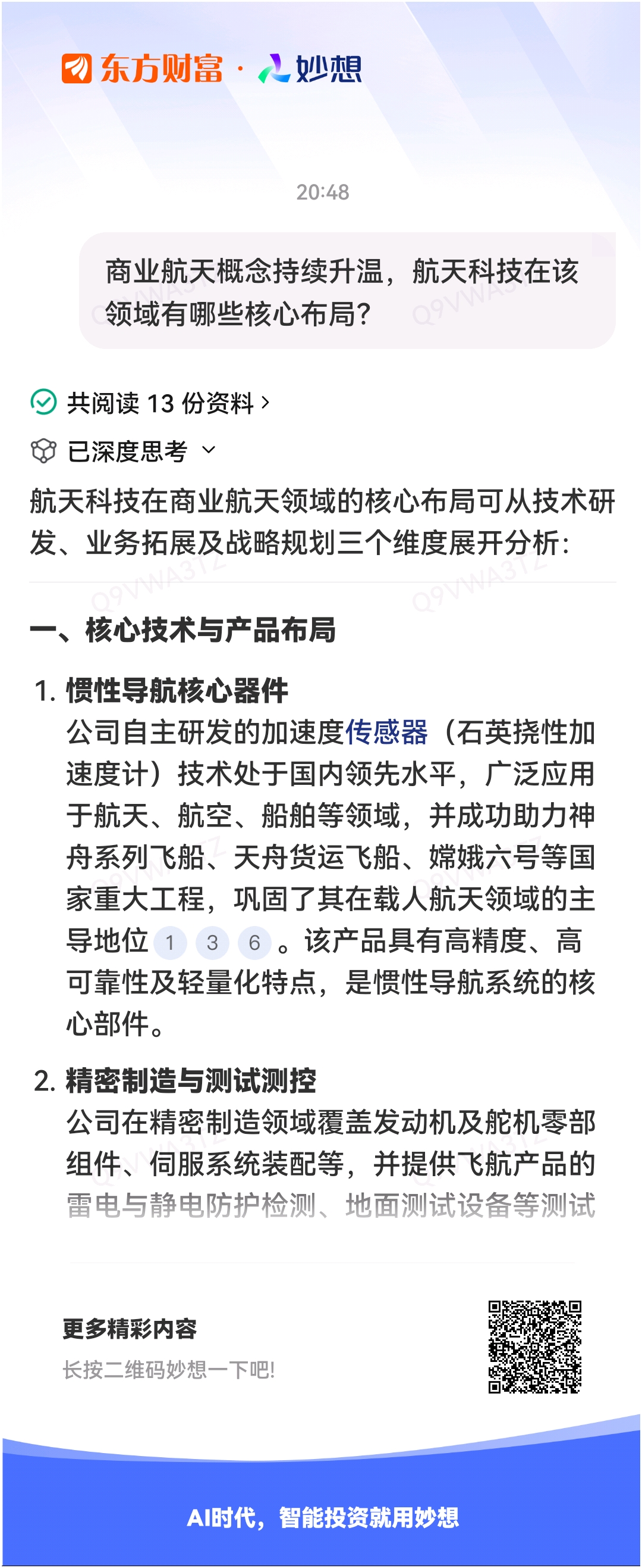 #@妙想,你怎么看?# 妙想一下:商业航天概念持续升温,航天科技在该领域有哪些核心布局?