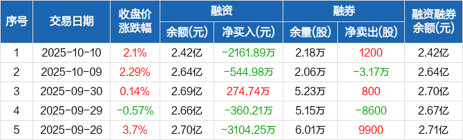 新洋丰:融资净偿还2161.89万元,融资余额2.42亿元(10-10)