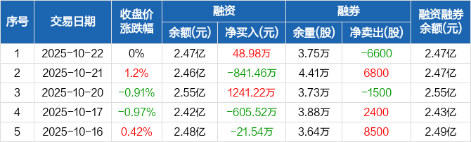 新洋丰:融资净买入48.98万元,融资余额2.47亿元(10-22)