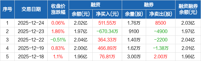 新洋丰:融资净买入511.55万元,融资余额2.02亿元(12-24)
