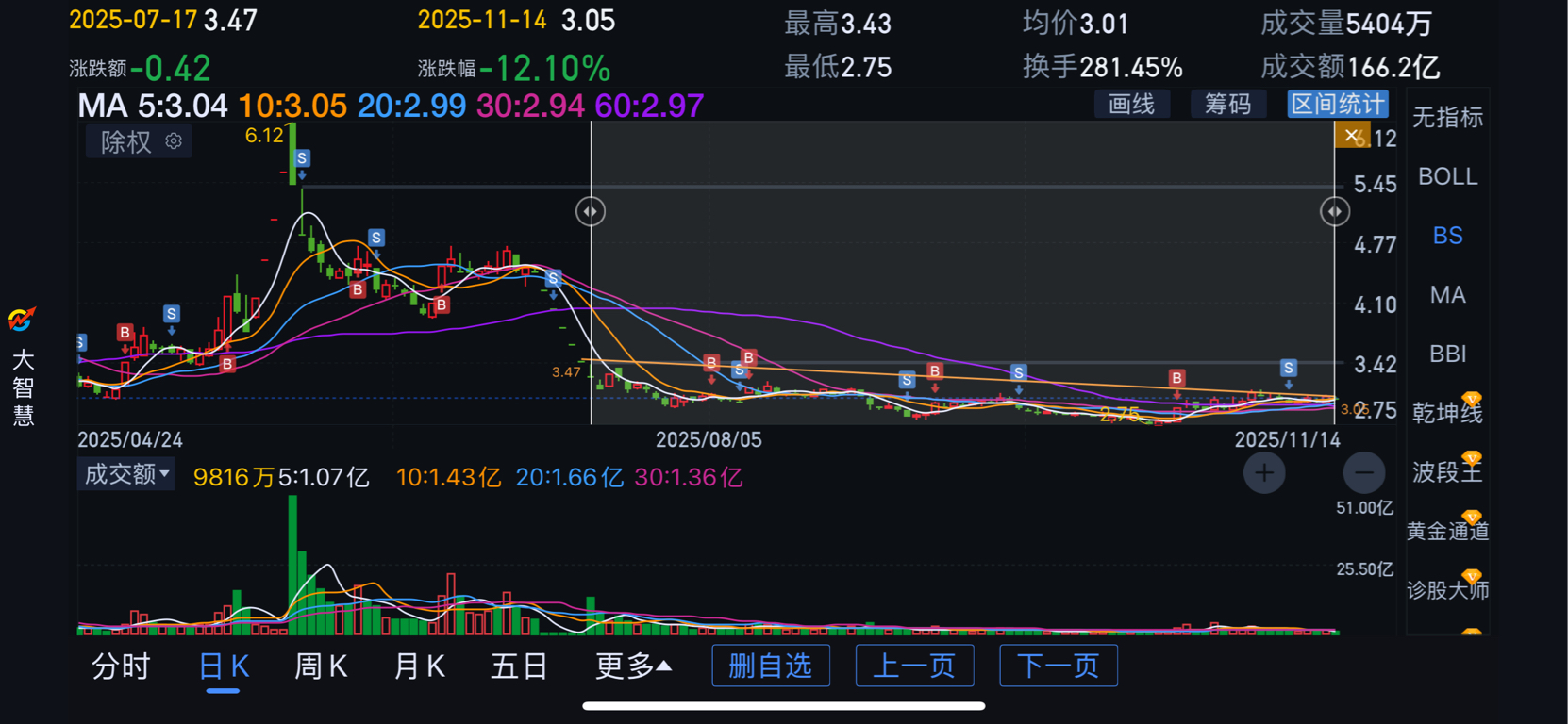 以3.05元为基准点,在+-8.8%范围内筹码高度集中。