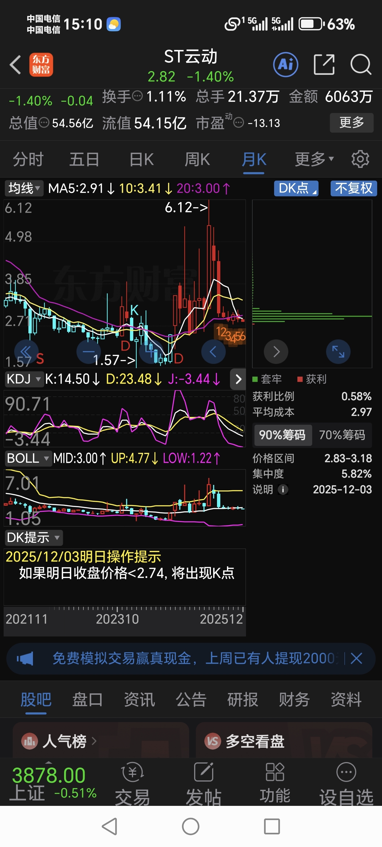 $ST云动(SZ000903)$ 努拔子力,看看能不能跌到1,6
